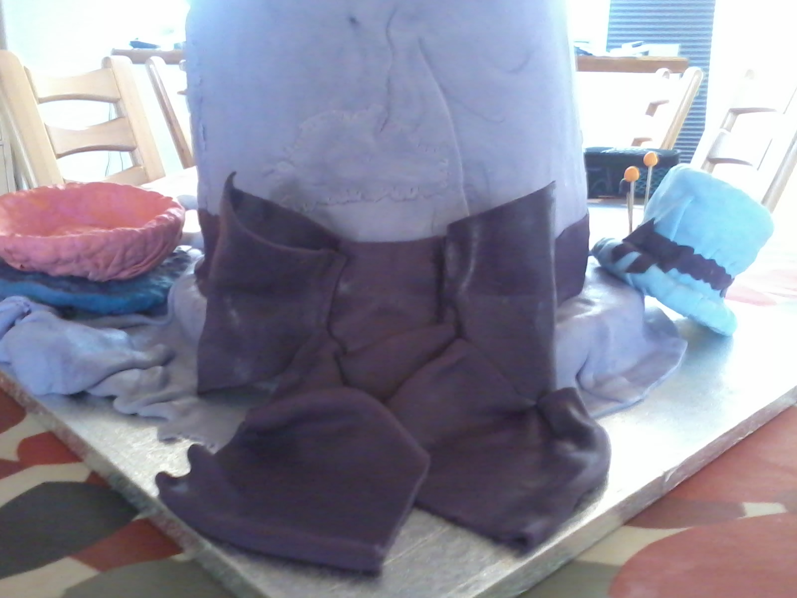 kagen er sponge bunde og nødde/chokolade bunde med tobleronecreme og hindbærmousse kagen er smurt op med IMBC og overtrukket med fondant. |
